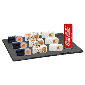 1 California roll à composer + 1 Maki roll à composer + 1 Yuki roll à composer + 1 Accompagnement au choix + 1 Boisson 33cl au choix.