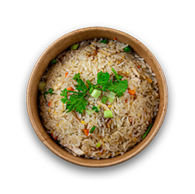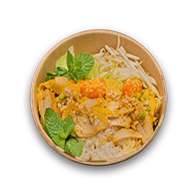 Poulet mariné, concombre, oignons, carottes, coriandre, pousse de soja et sauce Tori.