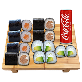 1 Maki roll saumon + 1 Maki roll thon cuit mayo + 1 Maki roll avocat cheese + 1 Accompagnement au choix + 1 Boisson 33 cl au choix.