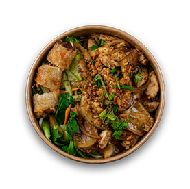 Poulet mariné, concombre, oignons, carottes, coriandre, pousse de soja et sauce Tori.